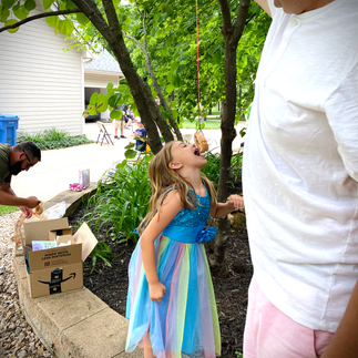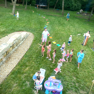 Chocolate Mountain- Our fire pit with a Smores station was this activity and treat for Chocolate Mountain. Using the square marshmallows are my favorite. We also took time at this station to have the kiddos change into their swimsuits if they wanted, as the upcoming stations included wet elements.